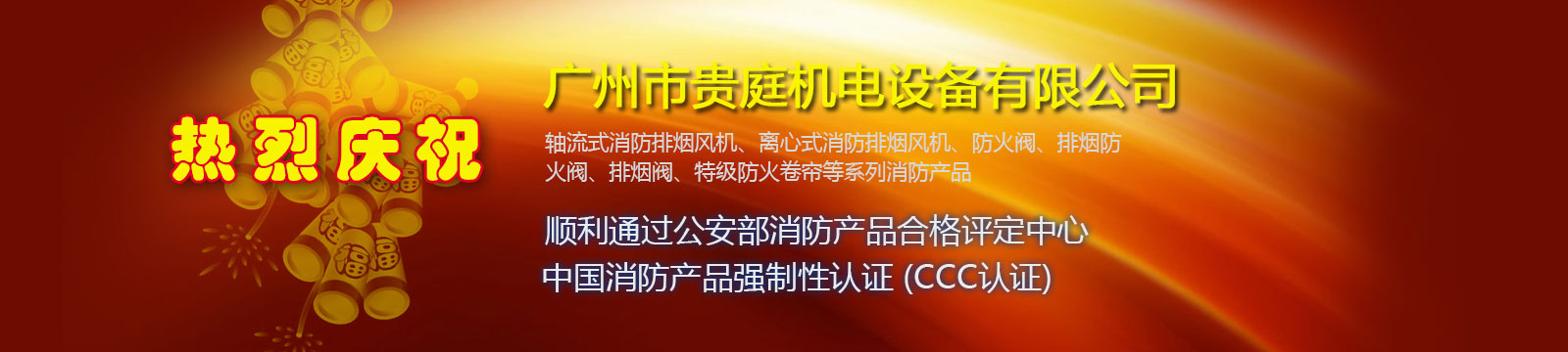 广州市贵庭机电设备有限公司是集研发、生产、销售于一体的消防设备制造企业,是广东省消防协会会员单位。主要产品有:轴流式消防排烟风机、离心式消防排烟风机、防火阀、排烟防火阀、排烟阀、风量调节阀、空调风口、消声器、静压箱等一系列消防防排烟产品